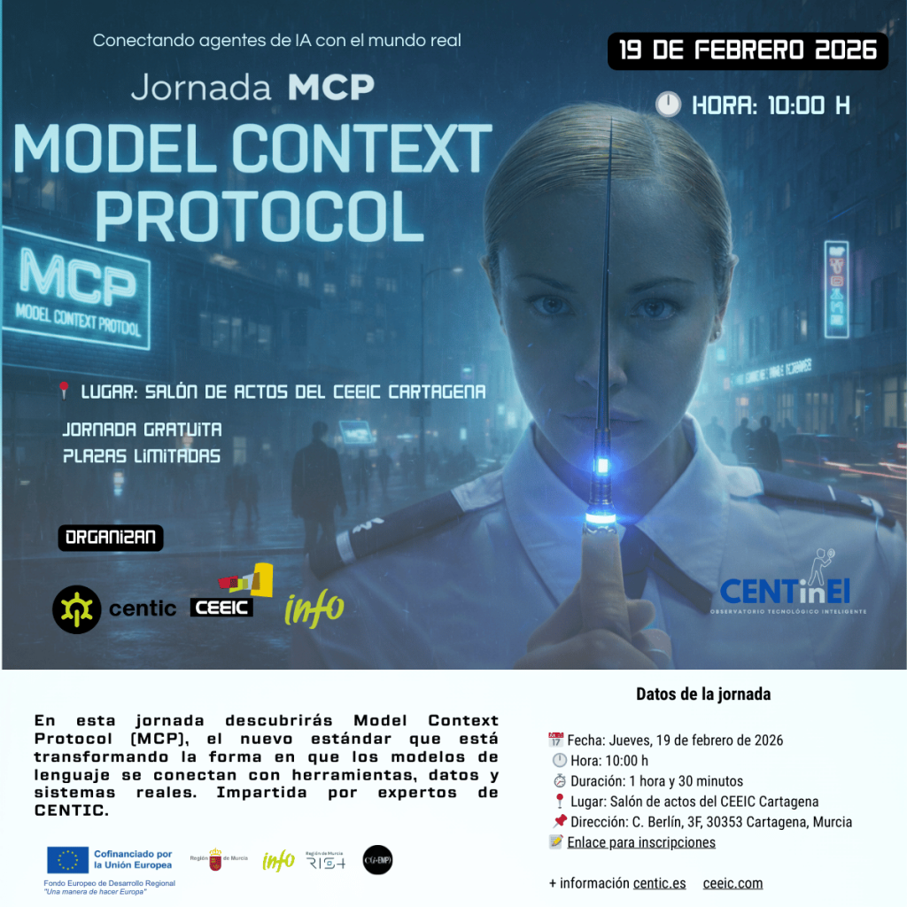 De la mano de CENTIC y CEEIC, en esta jornada descubrirás Model Context Protocol (MCP), el nuevo estándar que está transformando la forma en que los modelos de lenguaje se conectan con herramientas, datos y sistemas reales.